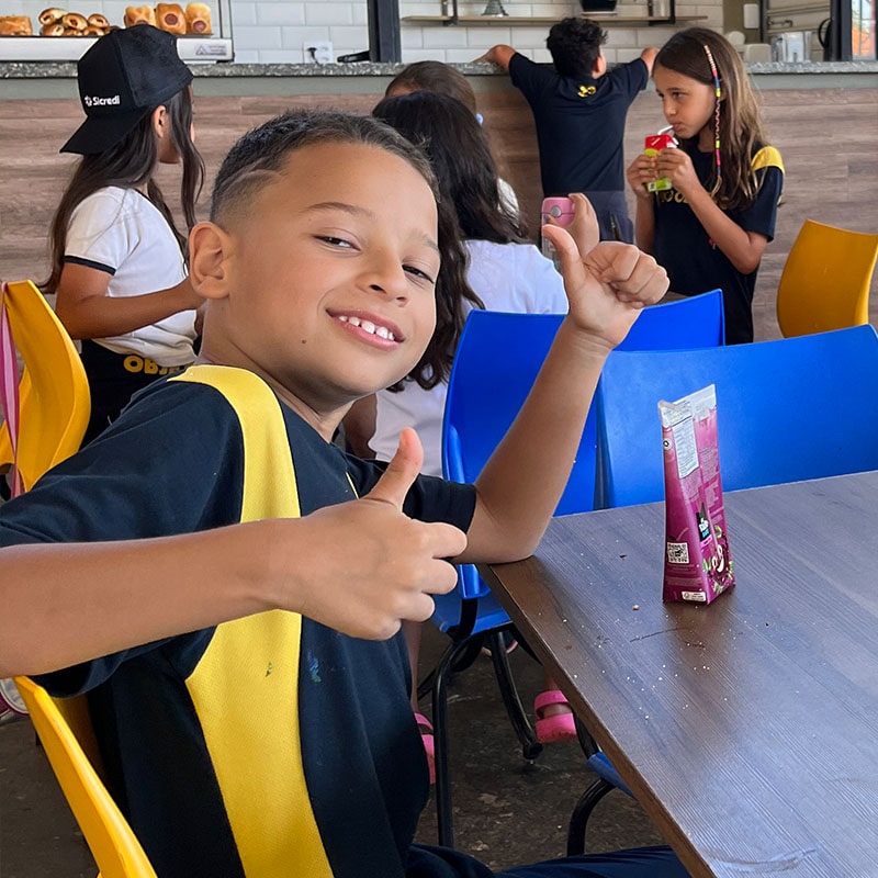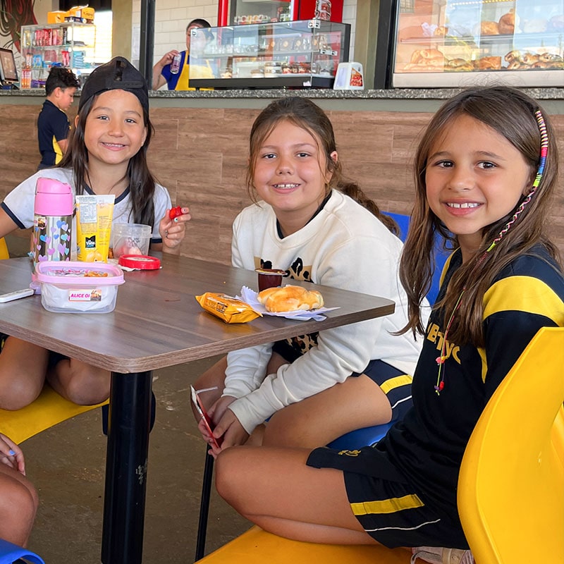 A hora do lanche também promove a socialização entre os alunos.